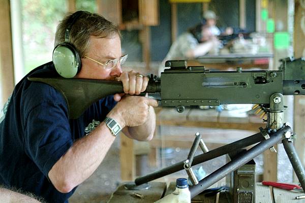 Look closely at this and the next two. Sometimes I've caught the bolt in motion; the handle is ghostly or sometimes nearly invisible. No links or brass flying, though (and in many other tries I never caught a muzzle flash, either).