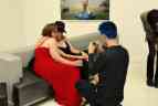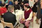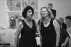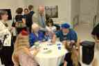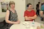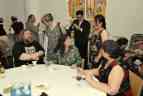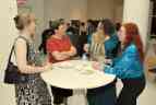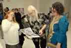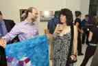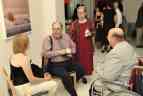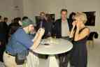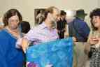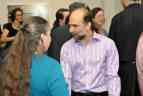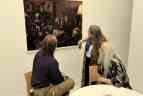 Pamela and Lydy look on as Dean investigates the book on the art exhibit (Angela Strassheim) in the party space. Dean, Pamela; Gahlon, Dean; Nickerson, Lydia