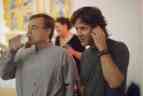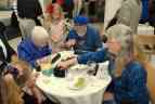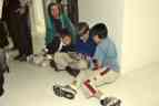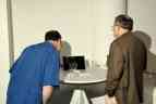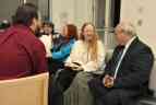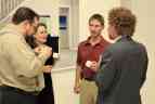 John, Michelle & Mike, David in back looking at picture. Donat, John; Donat, Michelle; Levin, Mike; Schroth, David